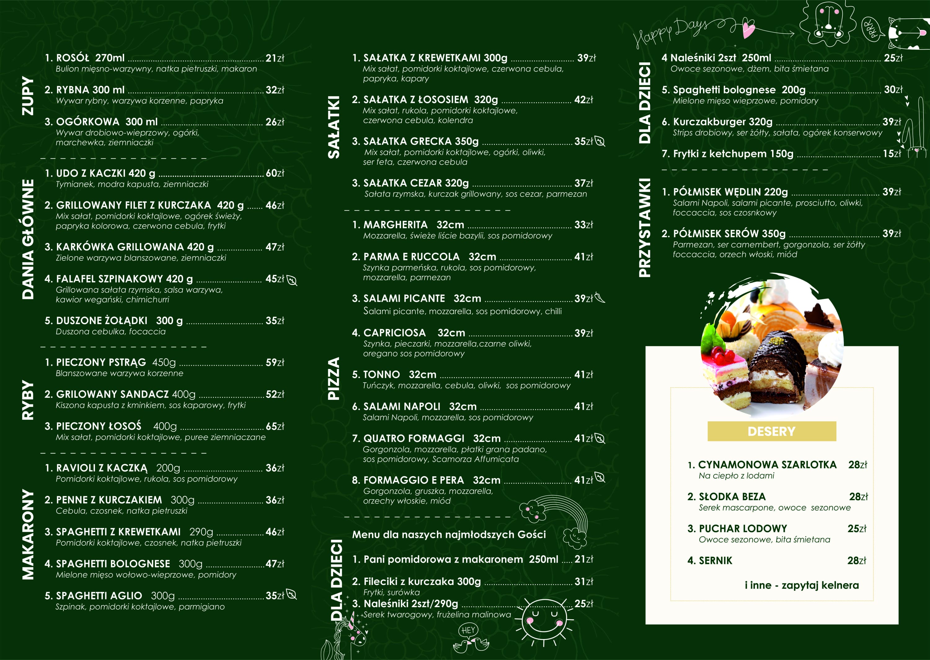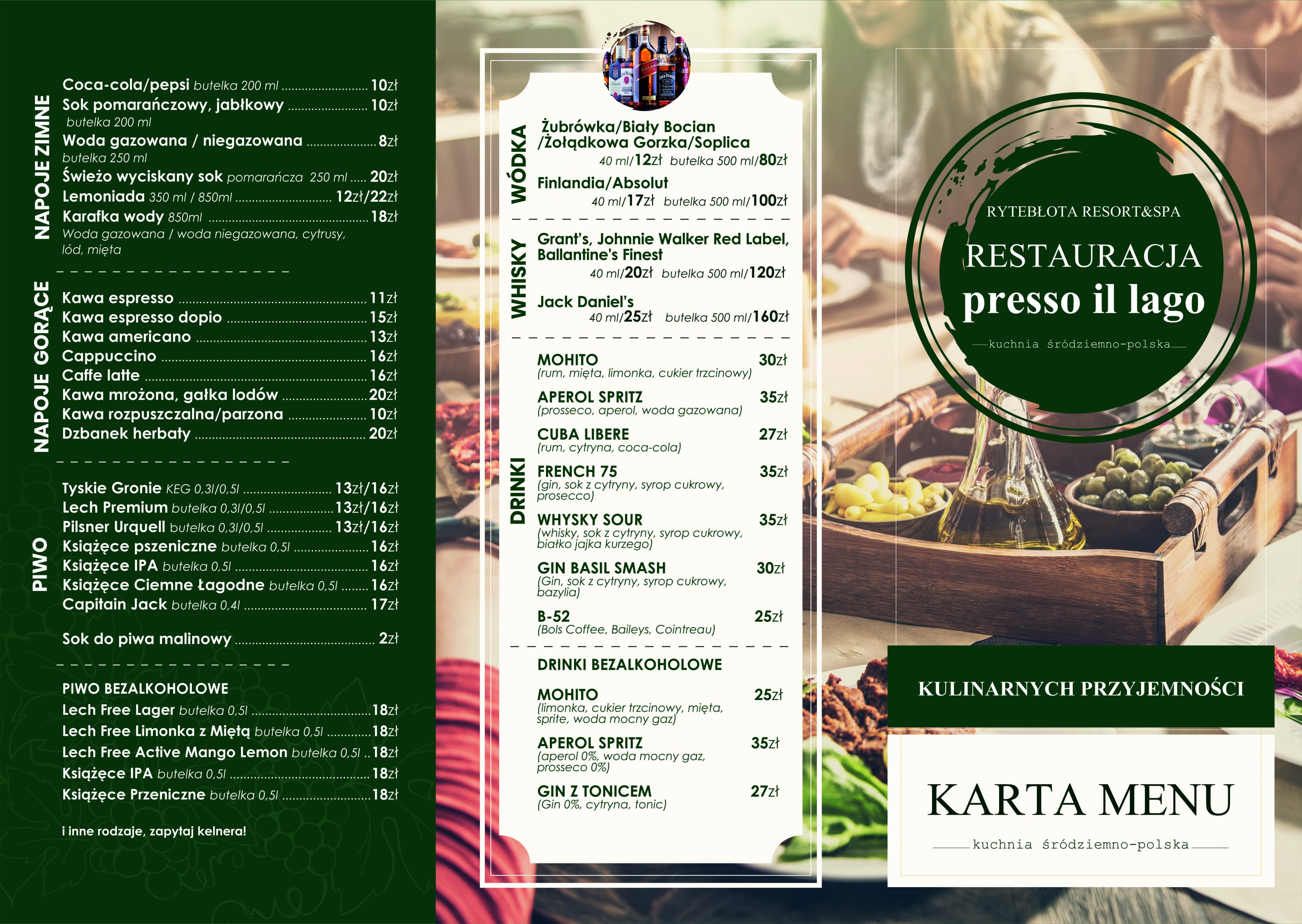 Nasza Restauracja specjalnie dla Państwa codziennie przygotowuje świeże dania własnej receptury, bazując na polskiej tradycji i lokalnych produktach. Odnajdziecie w niej Państwo specjały na każdą okazję. Nasza obsługa towarzyszyć będzie w podróży po lokalnych smakach, dobrodziejstwa lasów i otaczających nas wód. Zapraszamy na kulinarną podróż, która razem z nami okazać się może niezapomnianym doznaniem.